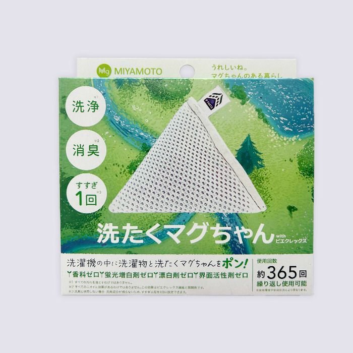 トウモロコシやサトウキビ由来の植物由来繊維ピエクレックスを袋に使用した、より環境に優しい「洗たくマグちゃん®」です。