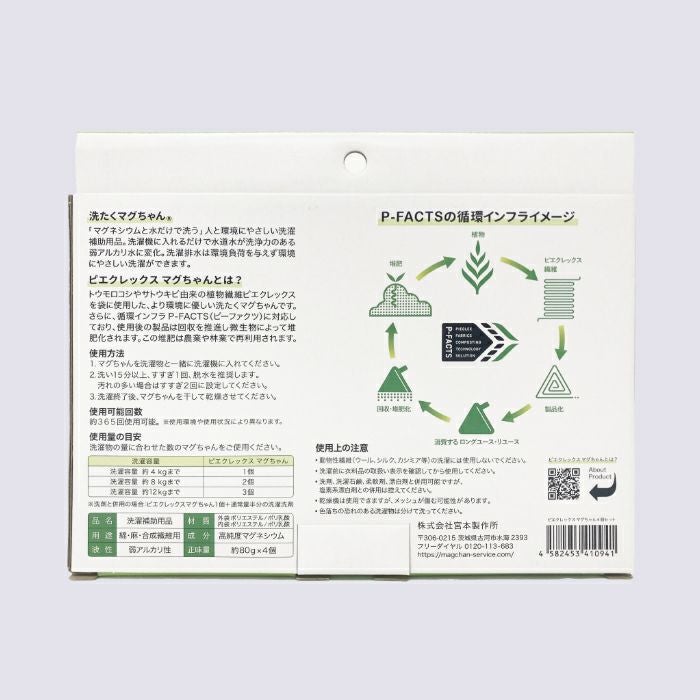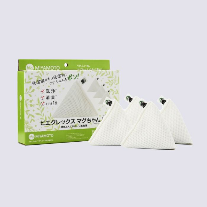 トウモロコシやサトウキビ由来の植物由来繊維ピエクレックスを袋に使用した、より環境に優しい「洗たくマグちゃん®」です。